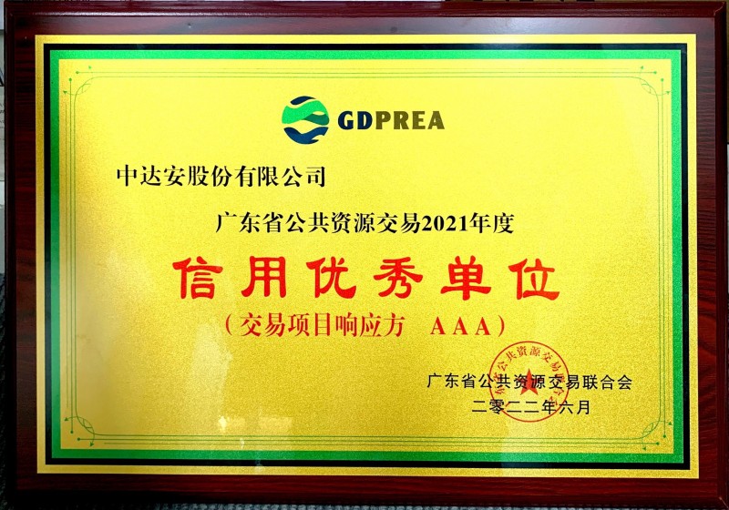 廣東省公共資源交易信用優(yōu)秀單位(2021年度AAA級(jí))-交易項(xiàng)目響應(yīng)方