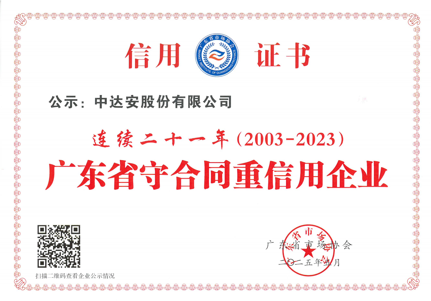 連續(xù)二十一年(2003年度至2023年度)廣東省“守合同重信用”企業(yè)