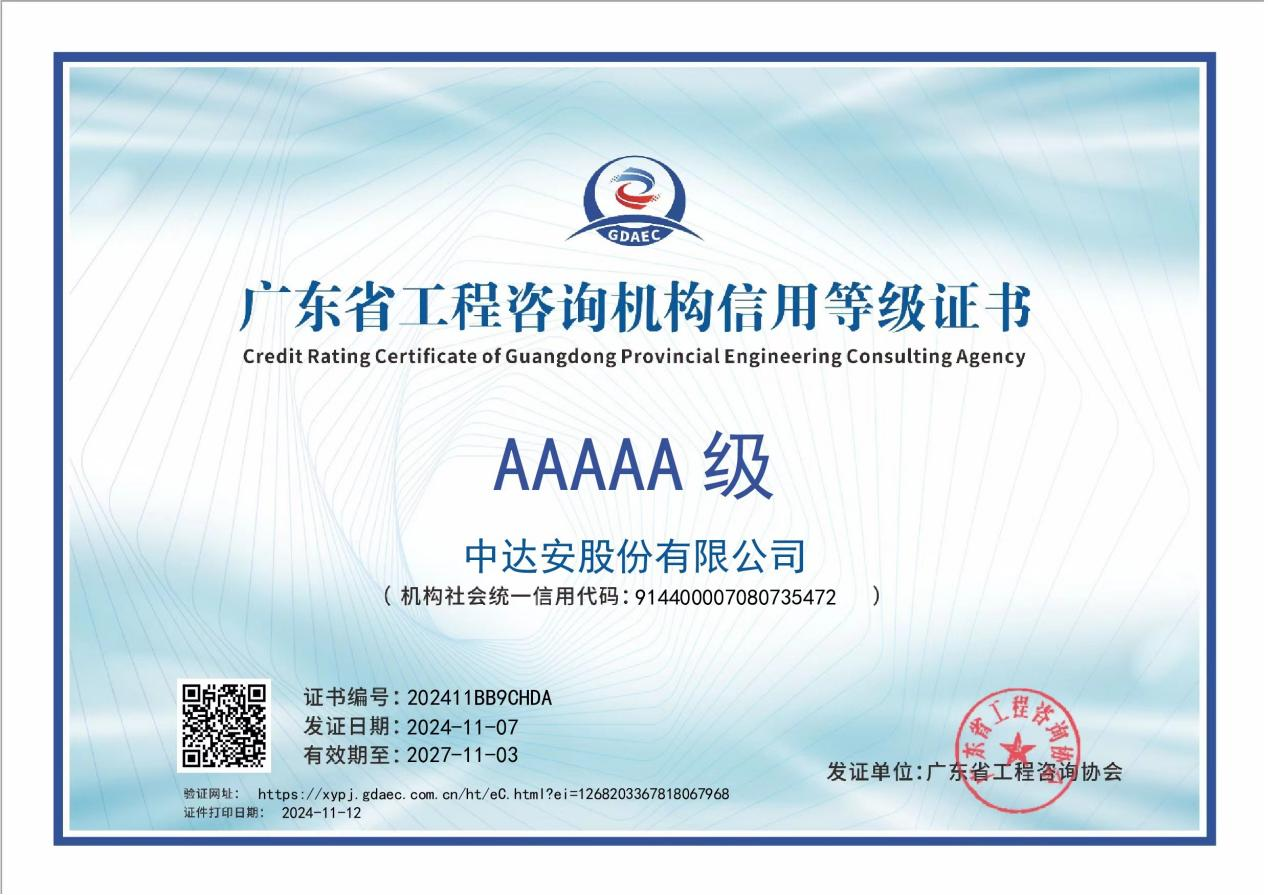 廣東省工程咨詢機(jī)構(gòu)信用評(píng)價(jià)5A級(jí)