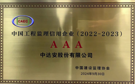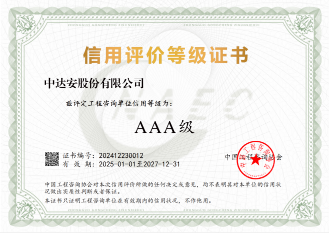 中國(guó)工程咨詢協(xié)會(huì)工程咨詢單位信用評(píng)價(jià)等級(jí)證書AAA級(jí)